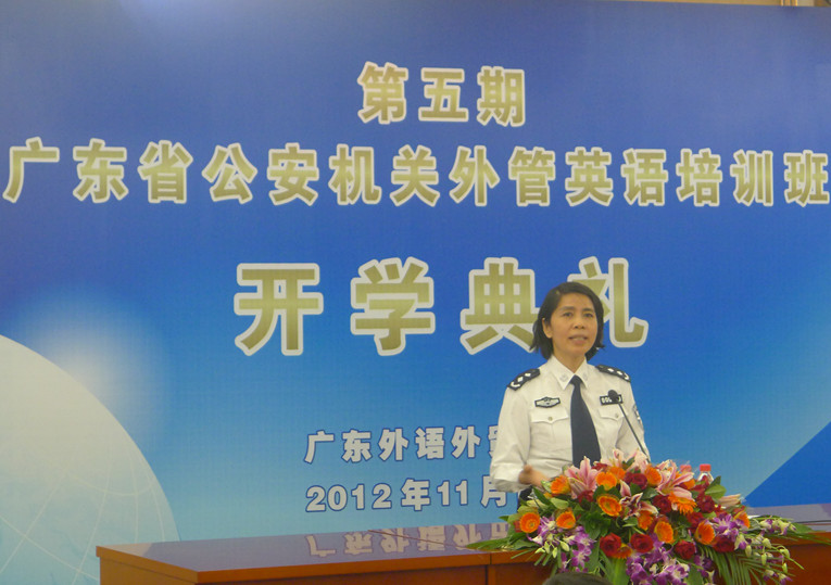 11月19日下午,广东省公安机关第五期外管英语培训班开学典礼在北校区第六教学楼黄华讲堂举行。
